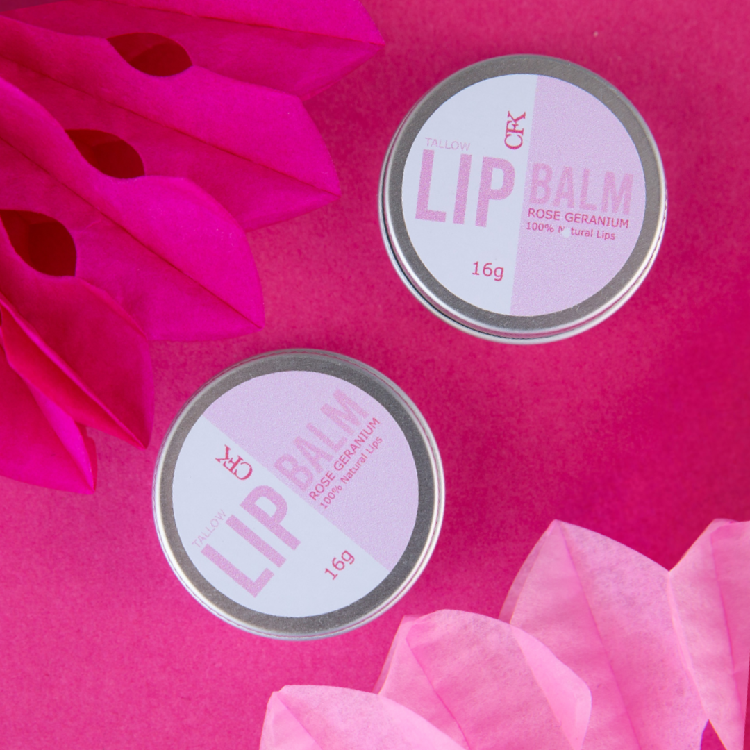 With a delicate floral kiss, this balm blends rich tallow with soothing rose geranium essential oil for smooth, beautifully scented lips.
